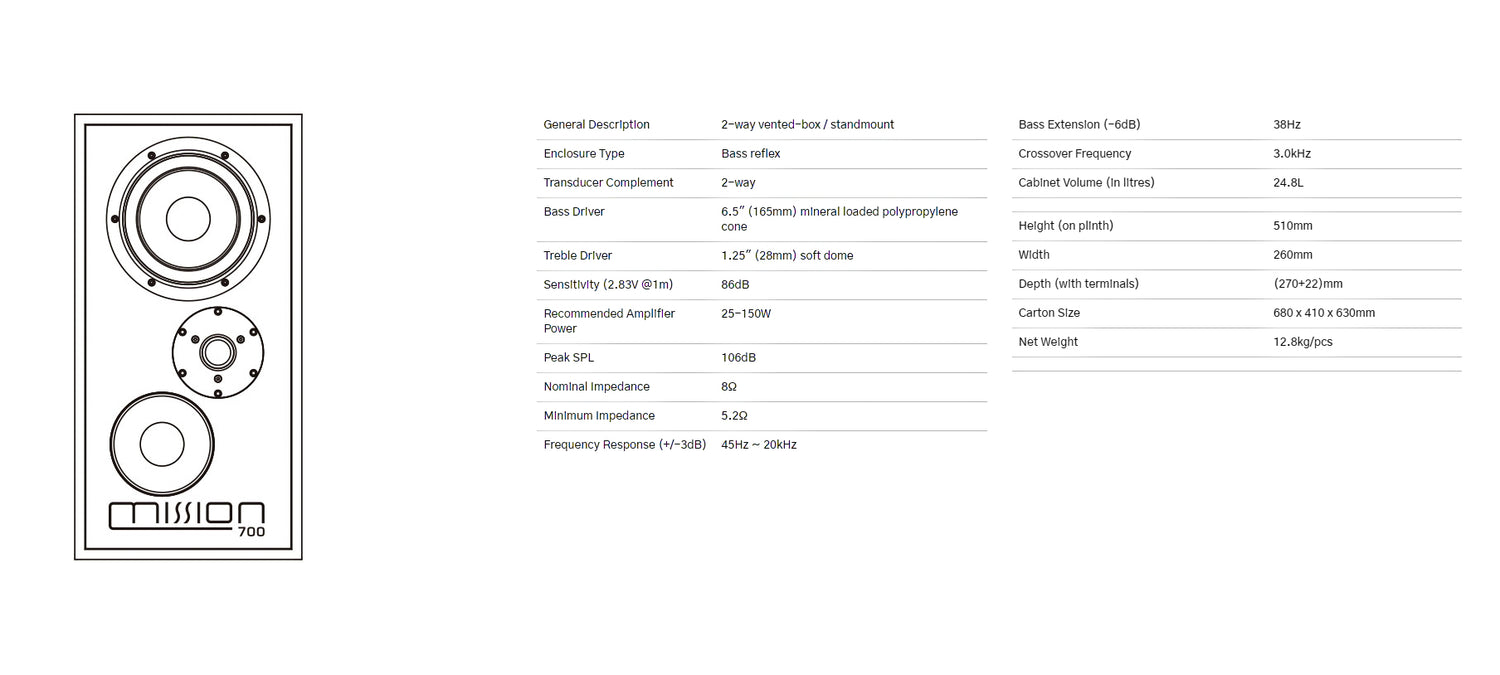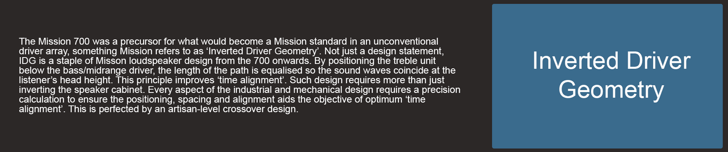 Revisited as a sister model to the eagerly anticipated reintroduction of the Mission 770 – a model which heralded the return to UK manufacturing for the Mission brand; the Mission 700 takes what was referred to as an ‘industry benchmark, in the original 700 model, but utilises Mission’s 45 years of evolution and development in loudspeaker design.