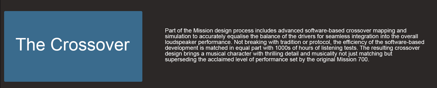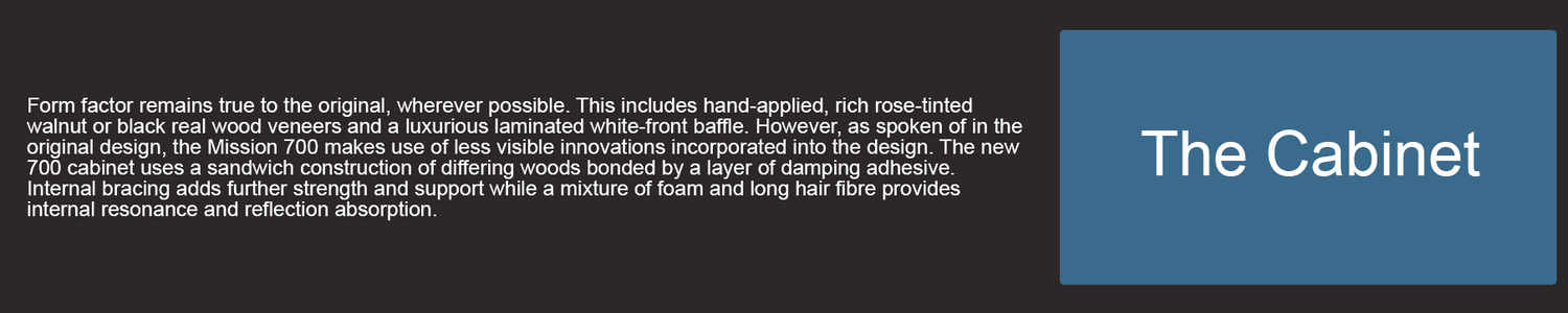 Led by Mission’s Director of Acoustic Design, Peter Comeau, the new Mission 700 bears a striking aesthetic resemblance to the original. However, there are many complex innovations and improvements that bring this revered model bang up to date.
