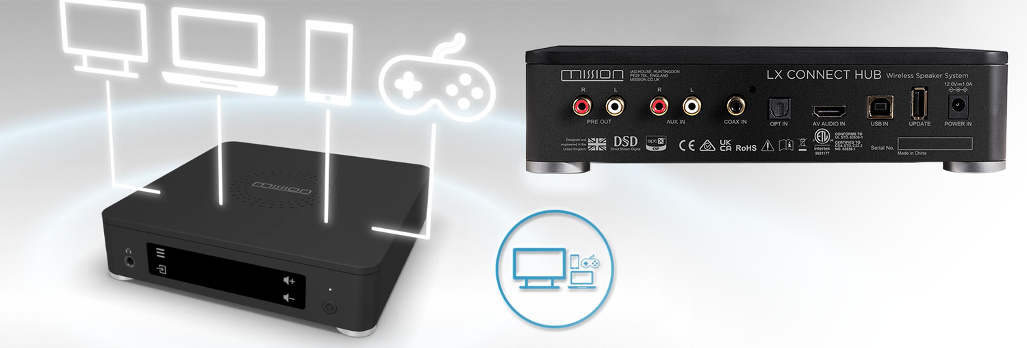 The LX Connect HUB, which acts as the central console for all of your music sources; including analogue, optical and coax digital inputs. The LX Connect HUB is a high-specification, standalone audio hub in it’s own right. There is a dedicated HDMI ARC connection to bring high fidelity, true wireless performance for TV, movies and games, and Bluetooth aptX connections for wireless streaming of hi-resolution audio from tablets and smartphones.